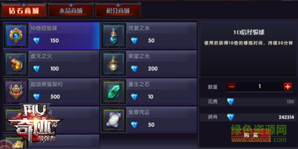 如果想要升级比其它人快,那么光凭靠日常任务是不够的,还要多花一点时间去挂机,当然光去挂机是不够的,我们要在商城内购买【十倍经验球】,Excuseme?十倍?没错!别人一倍的时间,自己十倍的经验收益!