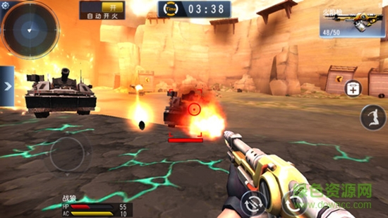 《火力前线》加入了载具作战元素,玩家可以操控坦克和机甲与敌方作战。驾驶载具穿梭在枪林弹雨之中,收割敌方人头,碾碎敌方基地,这种枪战爽快感不言而喻。同时,《火力前线》具有多个超级BOSS关卡,BOSS体型华丽庞大,并具备三个酷炫的主动技能,这样的大家伙可不好对付,玩家需小心谨慎,用操作和智慧战胜它们