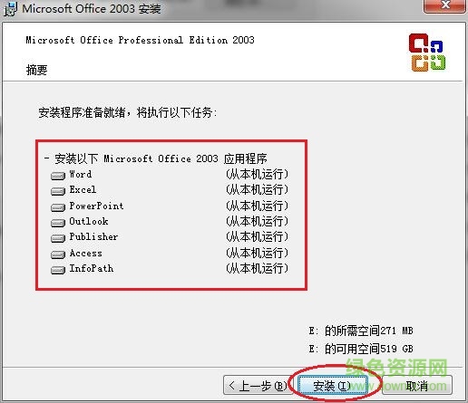 1.在绿色资源网下载并解压缩office2003安装包,双击“setup.exe”进行安装