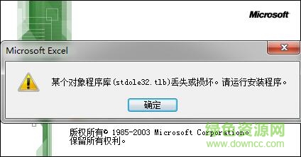 2.第一次运行Excel2003的时候,会有一个错误提示,如图所示