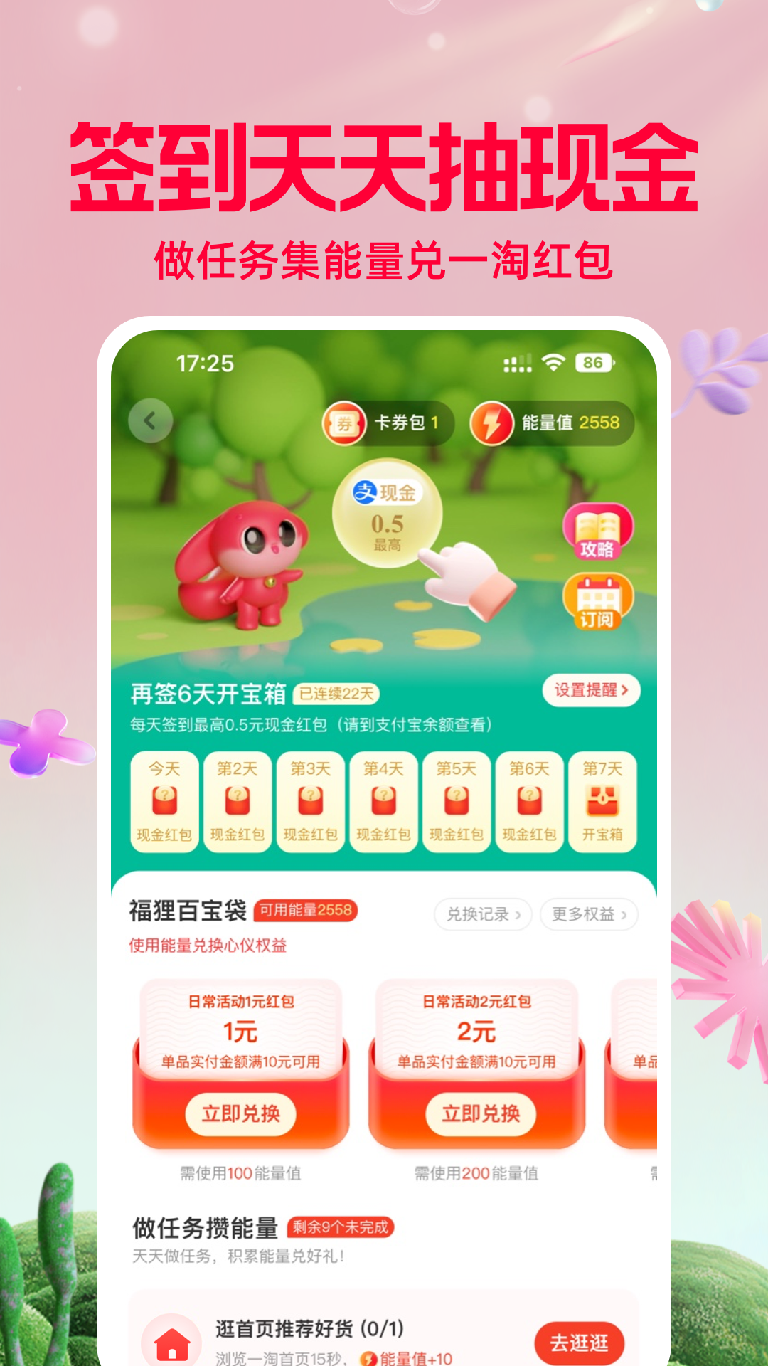 5.每月22日一淘福利日,0元抽大奖,领现金券,发集分宝,更有专属福利商品。只等你来!