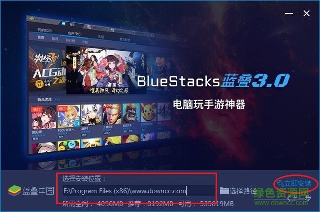 1.双击在绿色资源网下载的“BlueStacksGPSetup.exe”文件进行安装。