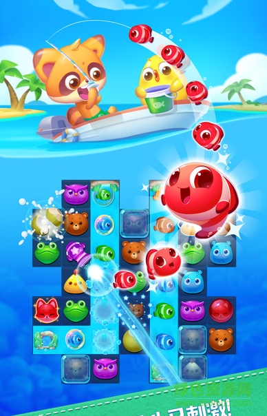 海面上浮着漂流瓶,小动物们好奇地打开瓶盖,哇~瓶子里飞出了美丽的蝴蝶,它还可以帮助小动物们清除旅程中的障碍哦!