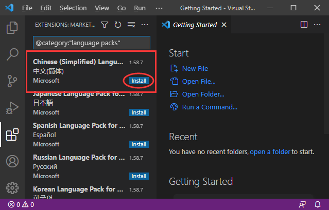 等待一会就安装成功了,右下角会有“Would you like to change VS Code’s UI language to Chinese Simplified and restart?”的提示,询问你是否切换成中文,选择下面的“Change Language and Restart”