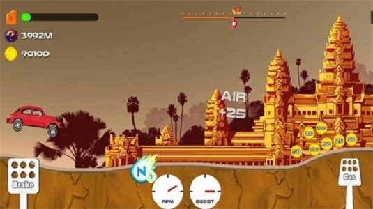 3、空中越野大挑战游戏设置了6个关卡,不论是场景还是赛车都更为细致。