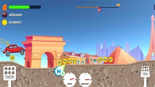 1、赛车玩家在游戏中获得的金币来购买新汽车、新关卡、升级汽车部件。