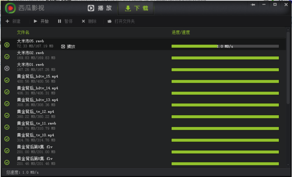 3、全部下载、暂停、删除、等待下载,速度多少、进度多少等等可看第三张图片。