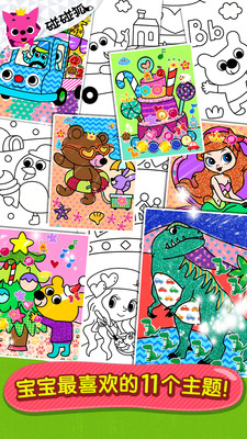 【碰碰狐填色游戏】有小朋友们所喜欢的,动物、汽车、公主和恐龙等11种填色主题。