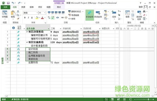 4、在任务名称中依次输入计划内容,各阶段名称、各任务名称等