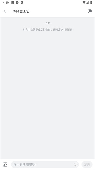 4、将自己想要说的话发给ta就行了,不过在对方主动回复或者关注你之前,最多发送1条消息!