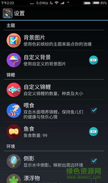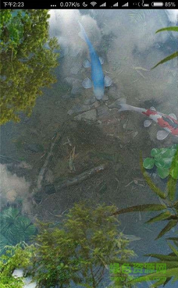 锦鲤池塘是一款已内购的3D高清动态手机壁纸,让你体验最好看的动态桌面,还能随意的添加鱼食、漂浮物和倒影等,好看又好玩,快来绿色资源网下载吧!
