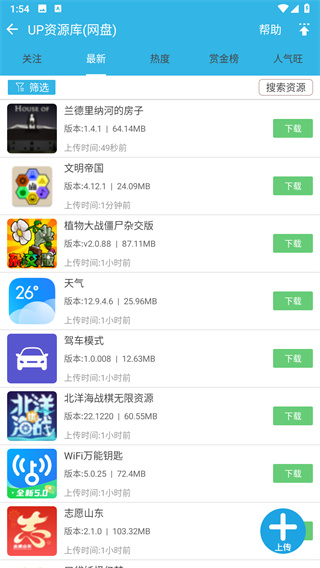 2、最新:查看最新的有其他作者上传的各种不同的游戏和软件