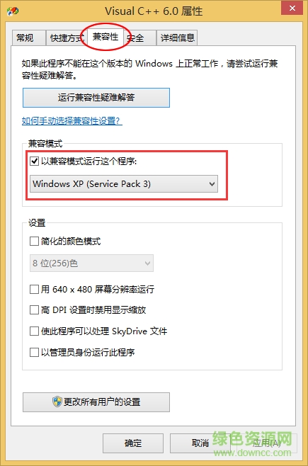 VC6.0能够在XP下很好的运行,无需进行额外的设置,但在 Win7、Win8 和 Win10 下,安装完成后还要修改兼容模式才可以。