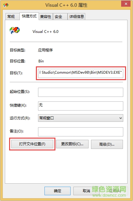 在 VC6.0 的快捷方式或开始菜单上单击鼠标右键,选择“属性”: