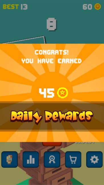 2.搭建的平台越高,你就能获得越高的分数,当然金币的加成也会更多,可以用来购买道具。