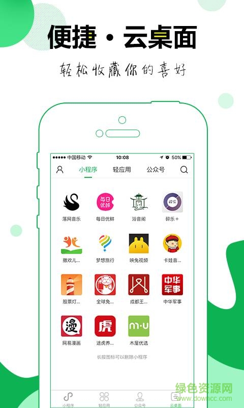 告别卡,慢,手机一键加速;智能整理,随时添加删除,随性定制。各类应用、公众号使用频率一目了然,不同终端,云端同步。将常用的微信小程序、轻应用、公众号添加至云桌面,方便使用,高效快捷。
