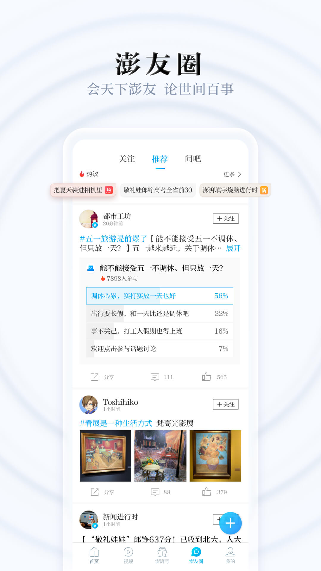 澎湃新闻网客户端是一款有态度有深度的手机新闻app,新闻的主要内容为思想和时政方面,深度报道,不仅可以看图文新闻,还可以看视频新闻,更新速度快,第一时间直击要点,欢迎喜爱的朋友到网站下载体验!