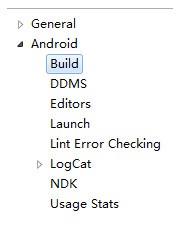点击左侧菜单的android左边的小三角形,拉开菜单