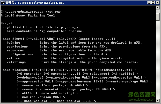 aapt即Android Asset Packaging Tool,在SDK的build-tools目录下。该工具可以查看,创建, 更新ZIP格式的文档附件(zip, jar, apk)。也可将资源文件编译成二进制文件,尽管你可能没有直接使用过aapt工具,但是build scripts和IDE插件会使用这个工具打包apk文件构成一个Android 应用程序。在使用aapt之前需要在环境变量里面配置SDK-tools路径,或者是路径+aapt的方式进入aapt。