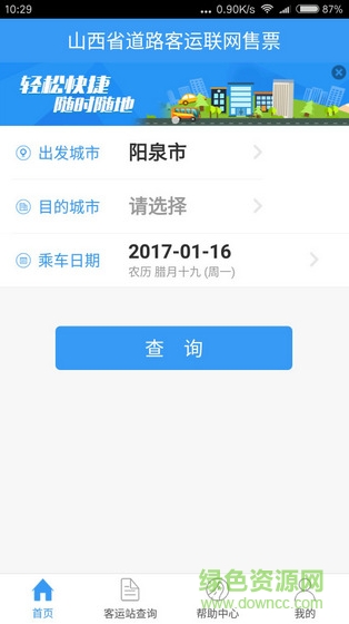 山西客运联网售票app是一款非常专业售票软件,这款软件能为用户提供各种特色的售票功能哦,并且还有各种便携的服务,让你随时随意不怕抢不到票哦,感兴趣的朋友赶紧来绿色资源网下载体验吧!