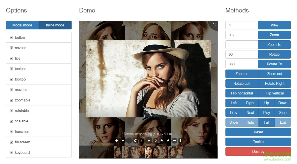 - 官方网站:http://fengyuanchen.github.io/viewer/