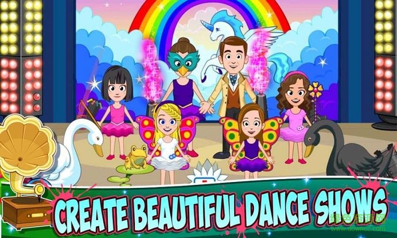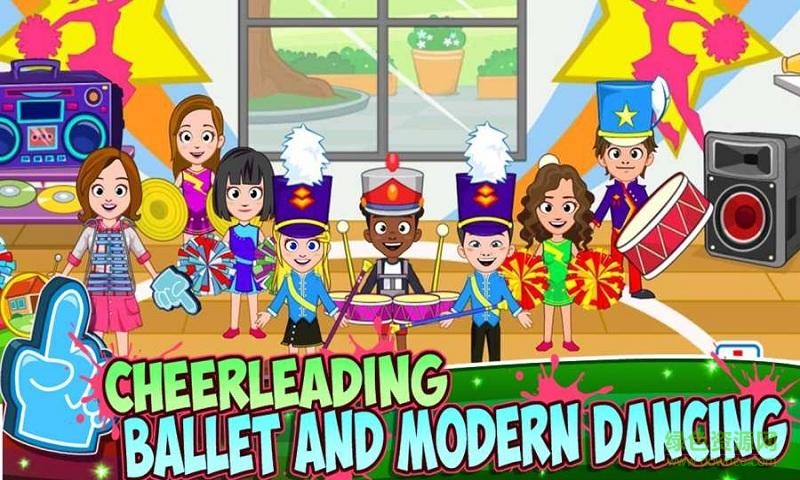 欢迎来到舞蹈学校,这是你的城镇必备场所。练习芭蕾舞课程,整装待发,加入拉拉队班级,准备你的舞蹈表演并自定义舞台。探索所有趣味场所、制服和乐器。与所有你喜爱的My Town新角色一起玩吧!