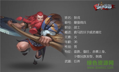 狄戎是具有传奇色彩的人类史上最强佣兵,出生南方遗迹森林中的蛮族,力大无穷,可与棕熊对抗而不落下风,他喜爱挥舞着巨大的星岩石斧,将敌人全部砸成肉泥。在末世审判之役中为掩护同伴撤回法师塔而以一敌万,最后陨落。