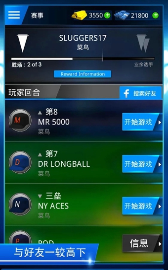 棒球英豪Tap Sports Baseball喜欢棒球的朋友可以下载来玩一下,一款很好玩的休闲游戏。游戏中你将与现役的棒球选手一较高下。