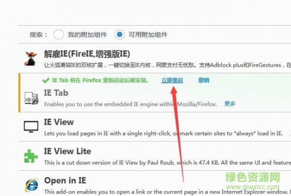 4.然后在搜索结果中会看到“IE Tab”组件,点击右侧的“安装”按钮。