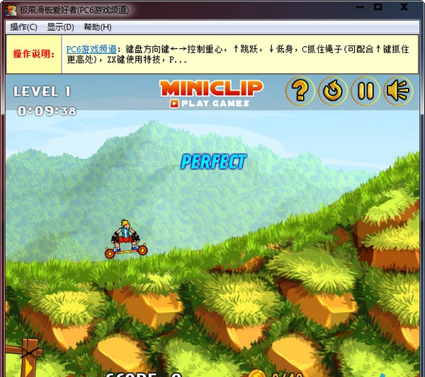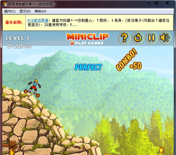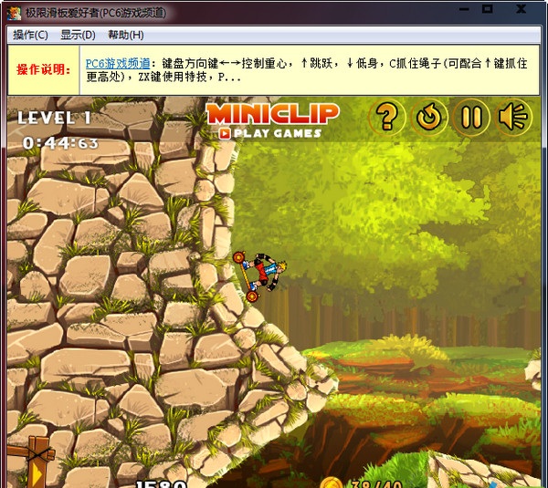 操作方法:键盘方向键←→控制重心,↑跳跃,↓低身,C抓住绳子(可配合↑键抓住更高处),ZX键使用特技,P暂停。