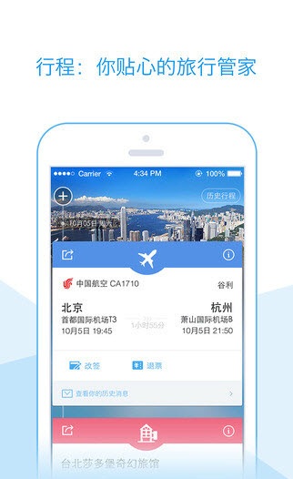 行程——体验全新行程,乘机酒店服务更贴心!