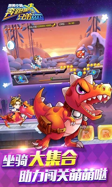 一款以热门综艺节目《奔跑吧兄弟》第5季为主题的手机跑酷游戏。游戏拥有非常精美的画面效果和简单易上手的操作技巧,加上高度还原的人物模型,玩家在这里可以享受到充分的与明星们一同赛跑的游戏体验,并且每个人物还有自己独特的技能哦!