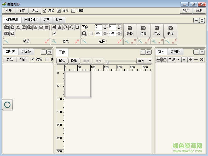 1.美图如意具有完备的标尺、网格、缩放功能,具有灵便的剪贴板和素材库功能,支持高效地进行图片创作、美化工作,可以获得令人满意的精美效果。