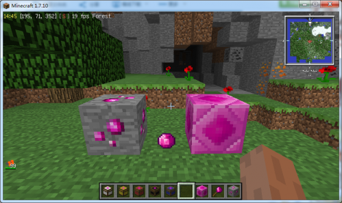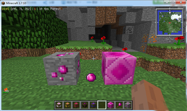 第一个是原矿(木镐即可挖掘),第二个是矿物掉落物,第三个是矿物方块(同绿宝石),他们的作用就是用来合成容纳箱以及法杖。