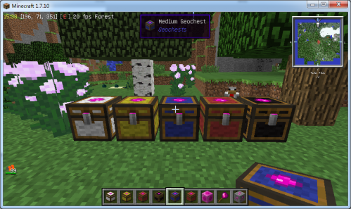 本mod提供了5种箱子,如图,容纳范围依次为3,5,7,9,11的立方体