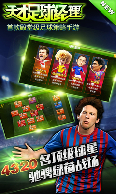 《天才足球经理》是一款目前最专业、最权威的手机端足球模拟策略游戏。游戏中包含正规的西班牙、英格兰、德国、意大利、法国欧洲五大联赛,共104支足球俱乐部,4320名世界顶级联赛选手全部百分百真实呈现。