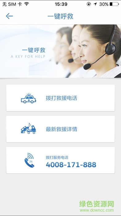 3.【一键呼叫】:在这里,可一键迅速拨打的救援及服务电话,并且在等待救援的同时可查看救援车辆具体位置,及时了解最新救援情况。