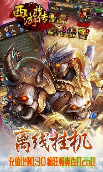 2019年最受期待暗黑类西游题材放置类游戏,开启挂机游戏新纪元。 unity3D引擎打造完美的视觉盛宴, 从画面上忠实还原了神话传说的恢弘场景。跌宕起伏的剧情,让玩家经历一整段从凡人成为拯救世界的英雄的过程!革命性创新玩法,颠覆传统挂机套路,我们突出“轻松但不放松”,玩家不需要复杂的操作却能体验畅快淋漓的打击效果。