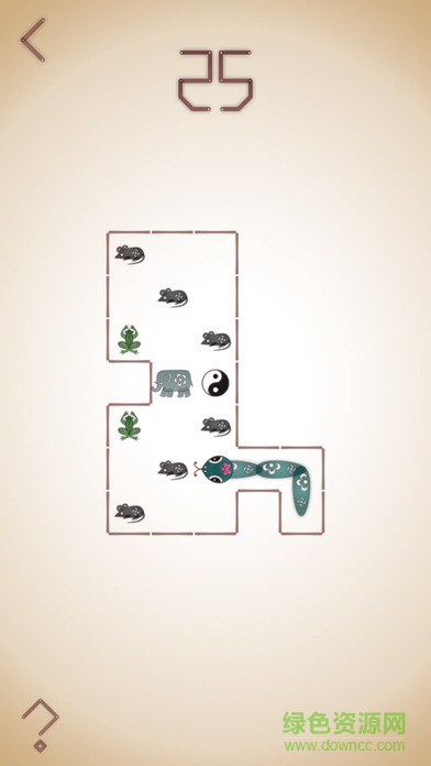在方格中一步一步移动贪吃蛇,吃掉所有其他动物。和贪吃蛇一样,每吃掉一个动物,蛇就会变长一格。吃光所有动物并到达出口,就可以获得胜利。