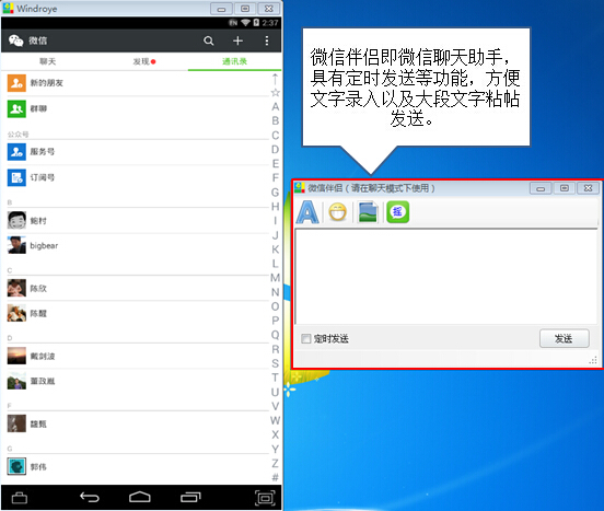 文卓爷(Windroye)在电脑上玩微信相当方便,Windroye自带有微信助手的功能,支持电脑的复制、粘贴功能,支持批量传图,确实比较方便推荐一把。