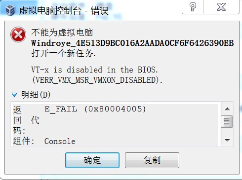 Windroye启动:VT-x is disabled in the BIOS, E_FAIL (0x80004005) 错误处理