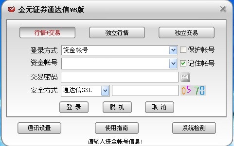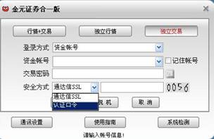 打开“金元证券通达信合一版”。 首次使用本软件安全方式选择“通达信SSL”。