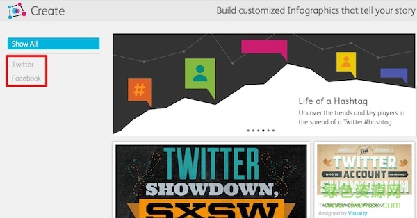 1.Visual.ly 的思路是抓住每个数据来源的特性,从而制作相对应的信息图模板,最终实现自动化制图这个功能。因此目前这种限定数据来源的做法具有一定的合理性。比如 Twitter 和 Facebook,两个服务的数据侧重点并不相同,如果采用一个通用的模板去生成信息图,那么数据一定会有偏颇。
