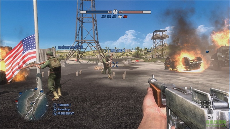 团队协作:与以往的战地系列一样,游戏比较注重玩家间的协作配合。士兵分为两个阵营:美国海军陆战队和大日本帝国海军。