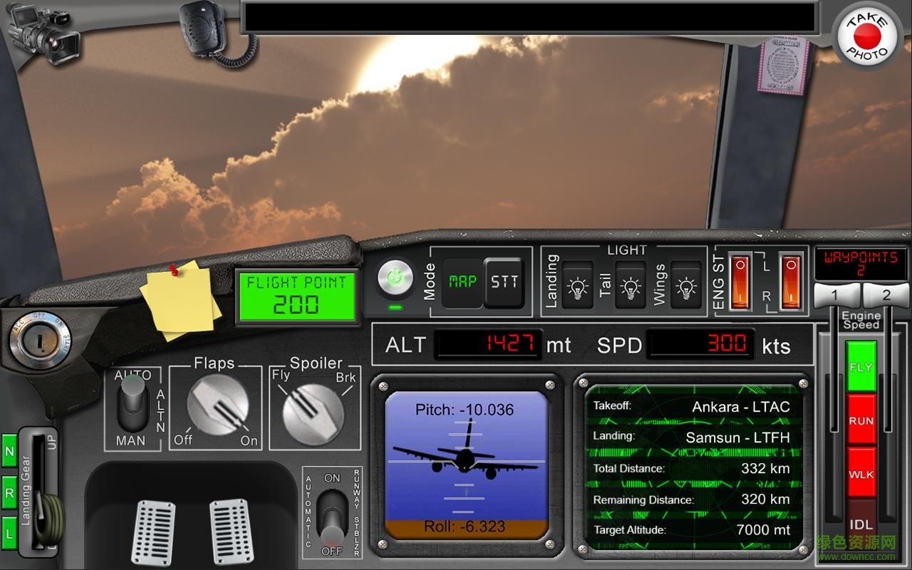 游戏还提供八种拍摄角度,让玩家自由切换画面影像,欣赏细緻精美的建筑物、机场、星空等各种环境,并仿照真实飞机的驾驶舱,配合地图、飞行距离、燃油和速度转换等多种资讯,让你体验最真实的飞行过程。