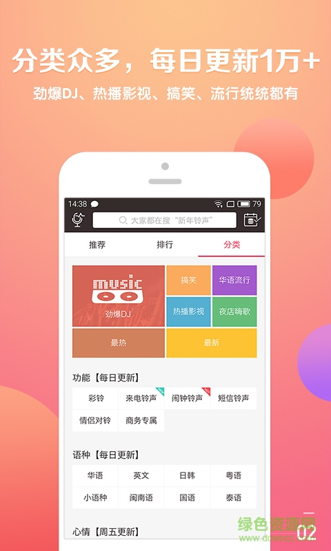 酷音铃声是一款专为喜欢手机铃声的朋友打造的手机应用,该应用包含800铃声等你来用哟,感兴趣的朋友赶紧来绿色资源网下载吧