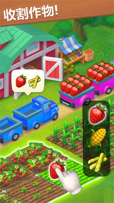 在操作方面,游戏真的拼尽全力来为用户提供极致简化,一间种麦子、一键喂牛、一键收割、一键盖房、一键完成、没有繁琐的任务,也没有复杂的操作,简单利索,仿佛一根指头都能玩...但这恰恰是休闲类游戏的初心所在,返璞归真。