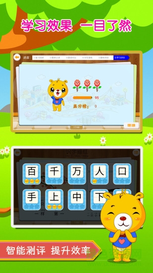 7.识字效率高:智能化选择宝宝陌生的汉字进行学习,并对已学过的汉字给出客观评价。