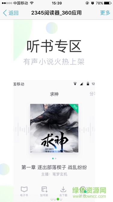 2345阅读器app是一款经典小说阅读app,开启追书模式,海量新书、热书全都不放过,还有特色听书功能上线,丰富您的阅读生活,欢迎到绿色资源网下载使用!