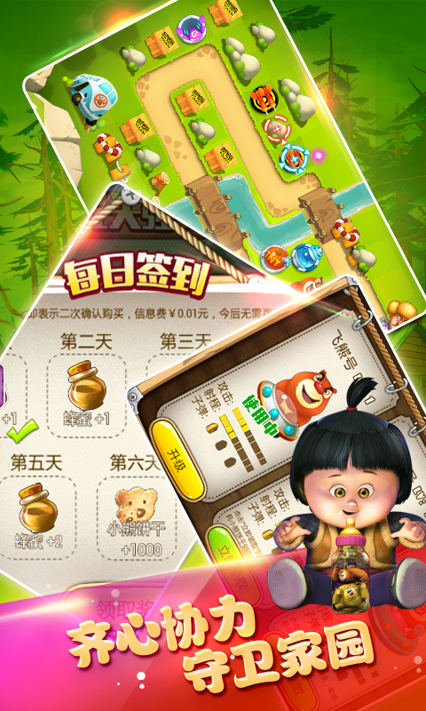 熊出没之保卫家园是一款改编自同名动画《熊出没》的策略塔防游戏,游戏画风可爱,深受小孩子们的喜爱。游戏在传统塔防玩法的基础上,简化了操作,但是丰富了游戏内容,让游戏变的更有趣,赶快下载体验吧!